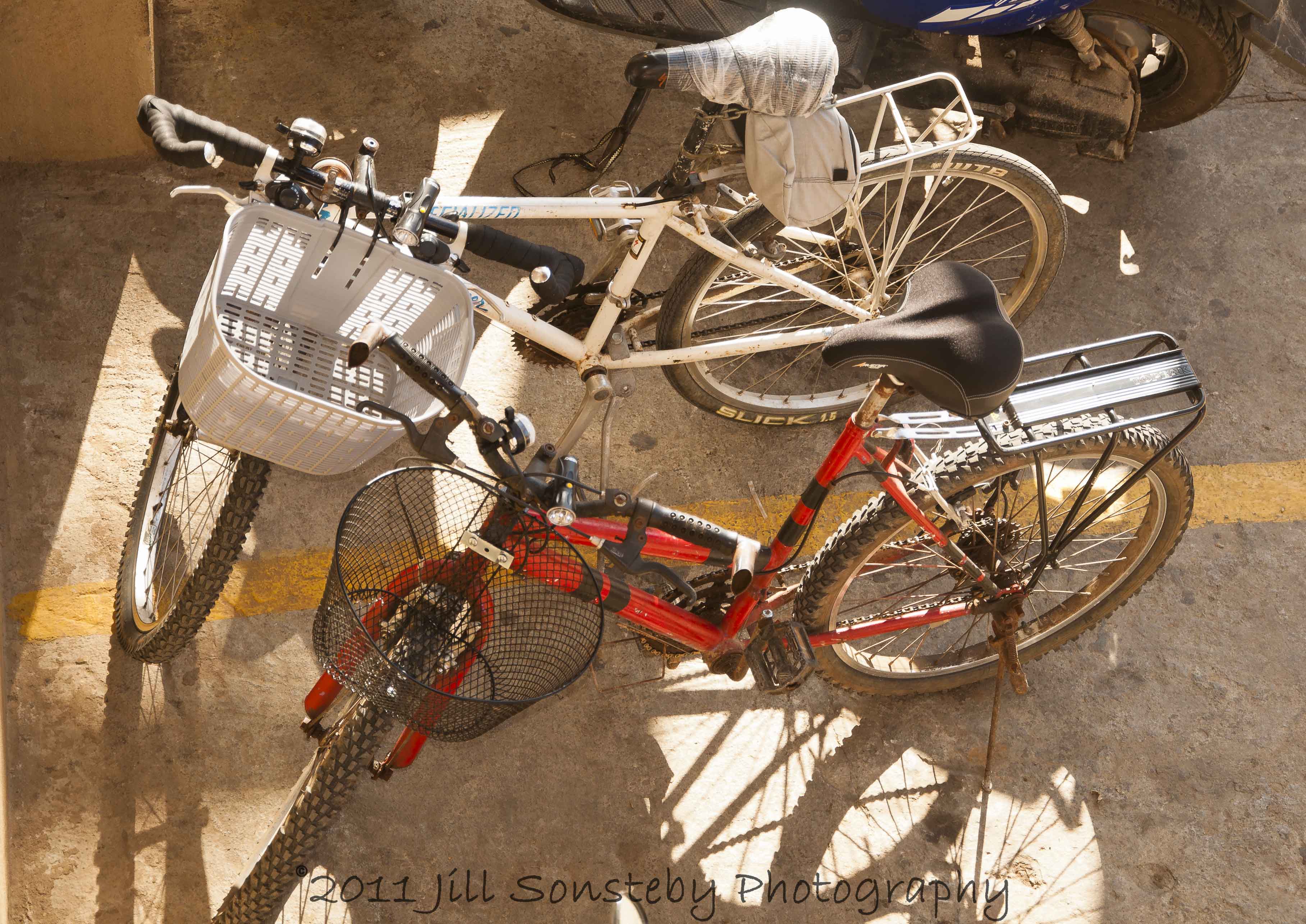 So, for the first time since my single-digit years, I get around on a bike. I haven’t got around to putting stickers on it or attaching the tassle-thingy’s on my handlebars, but it can change gears smoothly and hold its own on off-road adventures. Besides, both bikes here in this picture were given to me and my roomy by friends here on the island. On our last trip home to the States we went to a bike store and picked up some accessories that would make grocery shopping (Topeak trunk bag), night-driving (headlight), horn-honking (disco-light-up bell) and parking (kickstand) effective.