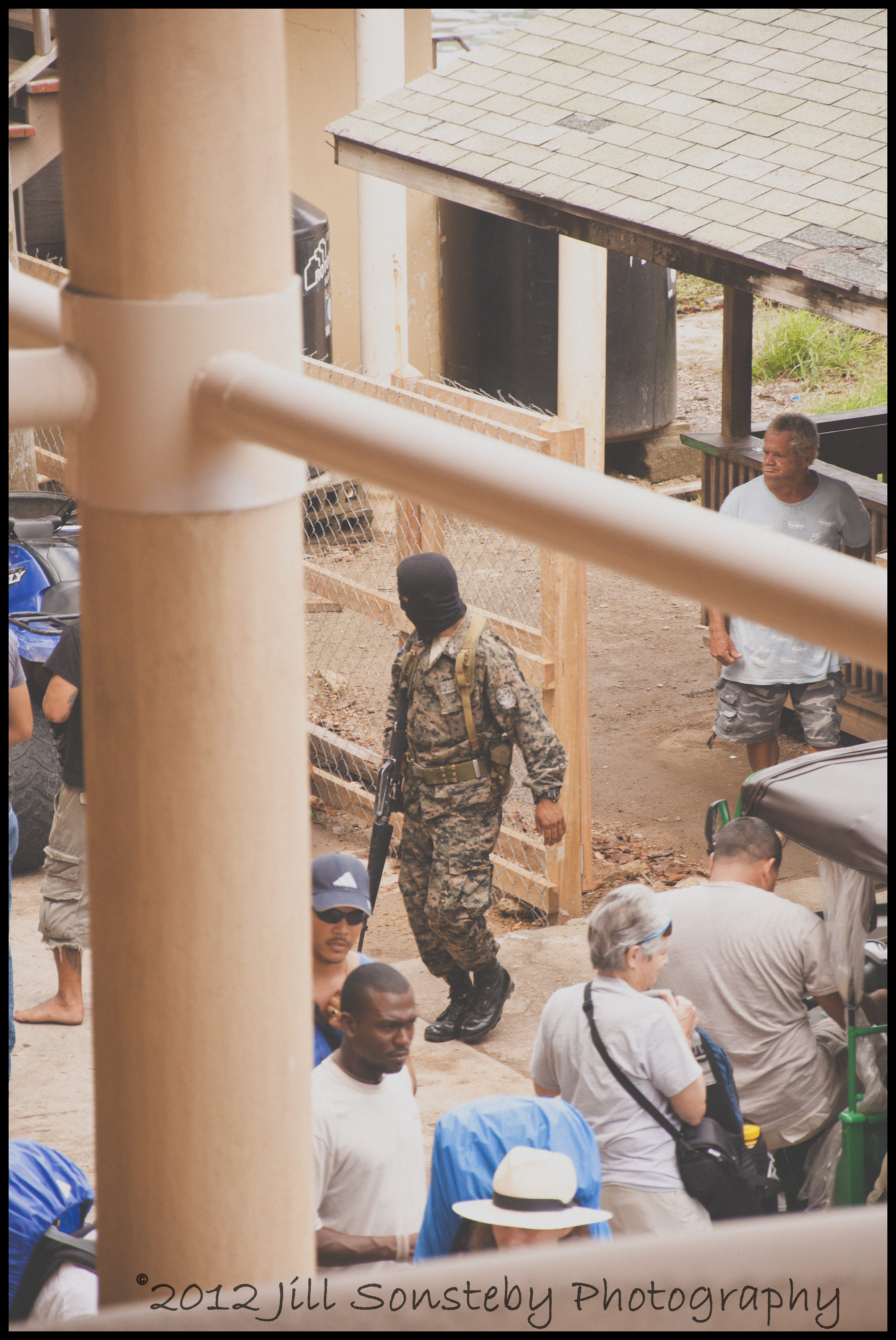 There was an abandoned airplane on the runway Wednesday, March 14. It was believed to be a drug plane, since the registered numbers were scraped off the plane and no one was to be found. This kind of action just doesn’t happen too often back where I am from, the USA. This masked fellow was among a handful of others in the drug trafficking investigation unit (DLCN) that was dispatched to the island to investigate the mystery plane.