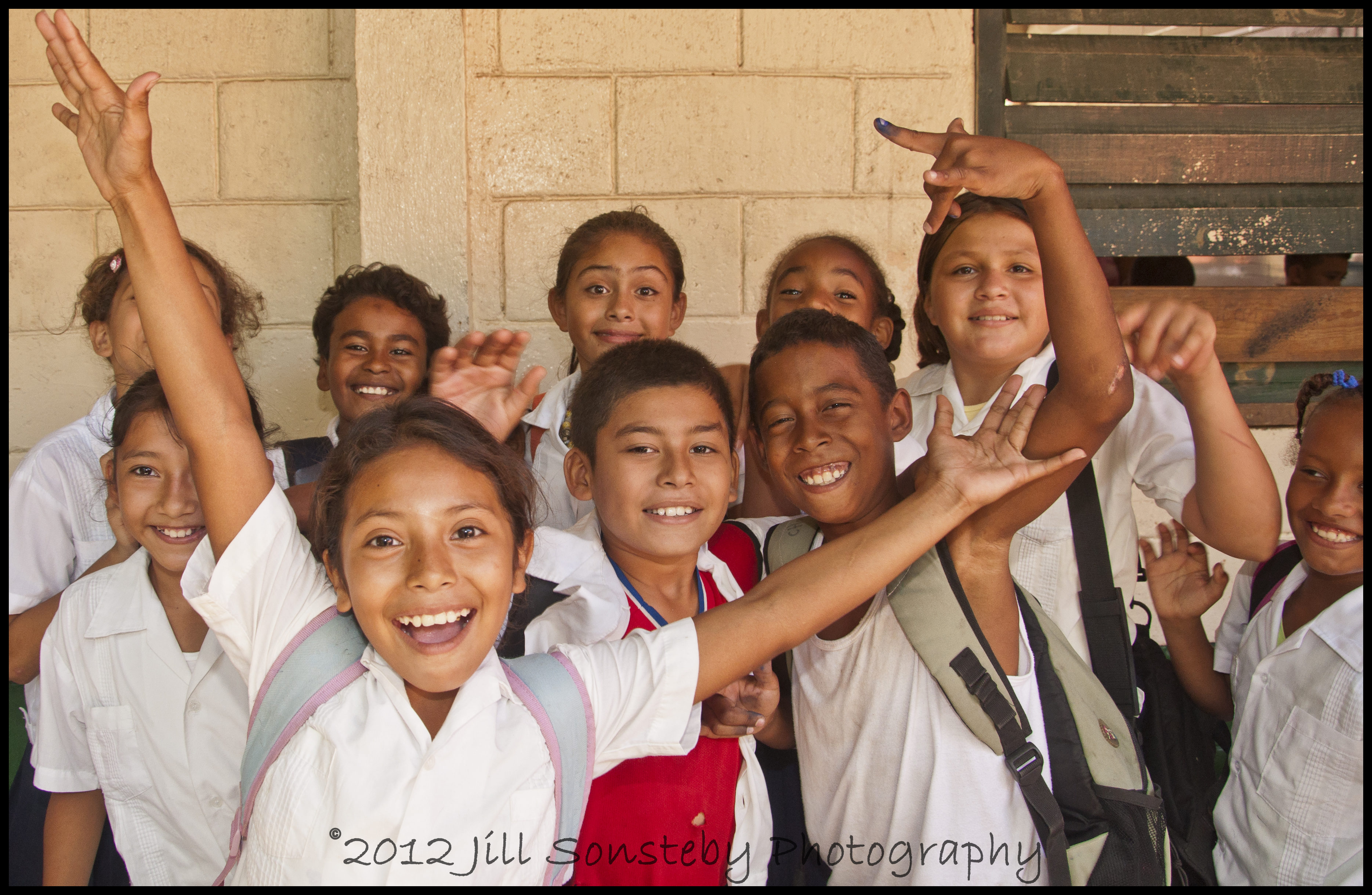 This is the swarming of smiling children who love to have their picture taken!