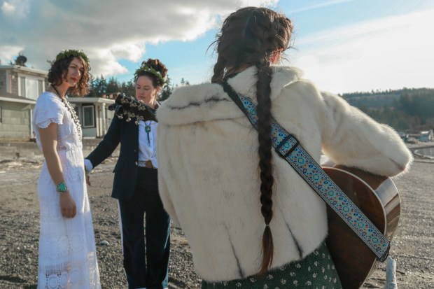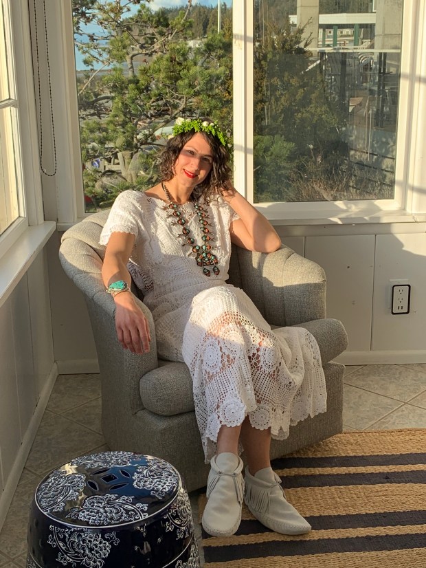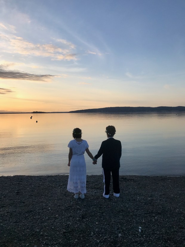 We moved quickly. I have been a bridesmaid in 13 weddings and saw the tumultuous and sometimes elated emotions that brides went through. Neither Chrysta or I wanted that crazy rollercoaster of emotions. We wanted simple and intimate. Something we would feel every moment of and remember. We rented a house on Camano Island, just a couple of miles from Fred’s house and we set the date. We invited our other dear friend and business mentor, Shinobu to officiate the ceremony. We asked Nicole Knutson, Chrysta’s kin and FauxyFurr’s marketing/brand strategist/photographer to capture the intimate event. I called my best friend, Suzanne and invited her. She screamed with excitement! Six of us were scheduled for the intimate event…then I thought, I want to surprise my soon-to-be-wife. So I secretly invited our friend and talented musician, Alie Byland, to surprise Chrysta and play some of our favorite songs. We gathered at the beach house and cooked wholesome food, made flower crowns, danced to music, smoked cigarettes on the beach and talked until the wee hours of the morning.