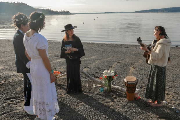 Chrysta & I got married at sunset on March 13, 2019, on Camano Island, WA. Shinobu and Suzanne made our wedding alter sacred, beautiful and divine by scouring the beach that morning in search of shells and driftwood and by raking our pathway to oneness with love and intention.